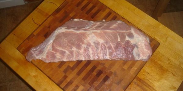 Rinse off ribs. While rinsing remove pieces of fat and meat you come across thats hanging around. Once this is done pat dry. Slabs should be room temperature. Putting cold ribs in the pit, on the grill, or hey in the oven means the coldness will have to cook out before the ribs start cooking. Here is where you can get creative. Seasoning the meat. This can be as simple as applying just salt and pepper, to mixing up your own dry rub made up of different herbs and spices recipes are easily found on the web. There are marinades and brines you can try. Whatever you do write it down. Stick to it, fine tune it. This will become your signature. The top secret technique people will talk about, and come to expect every time they bite into your ribs.