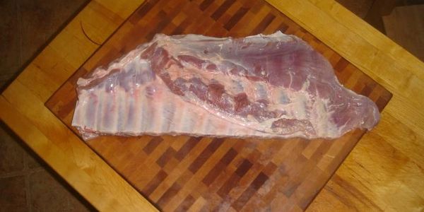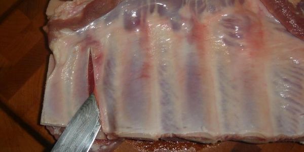 The first step when I prepare spareribs depends on which end I grab first. In any case they all come out the same. One of the real secrets to creating great ribs is to remove the membrane on the back of the cut. This is the most labor intense part, and because of this some people don't bother doing it. If you are going to season and slowly cook the ribs not removing the membrane would block the absorption of the seasoning and smoke flavor from penetrating into the meat, so I recommend removing the membrane. God help you if while at a BBQ contest a judge bites into ribs you submitted with the membrane still attached for judging.